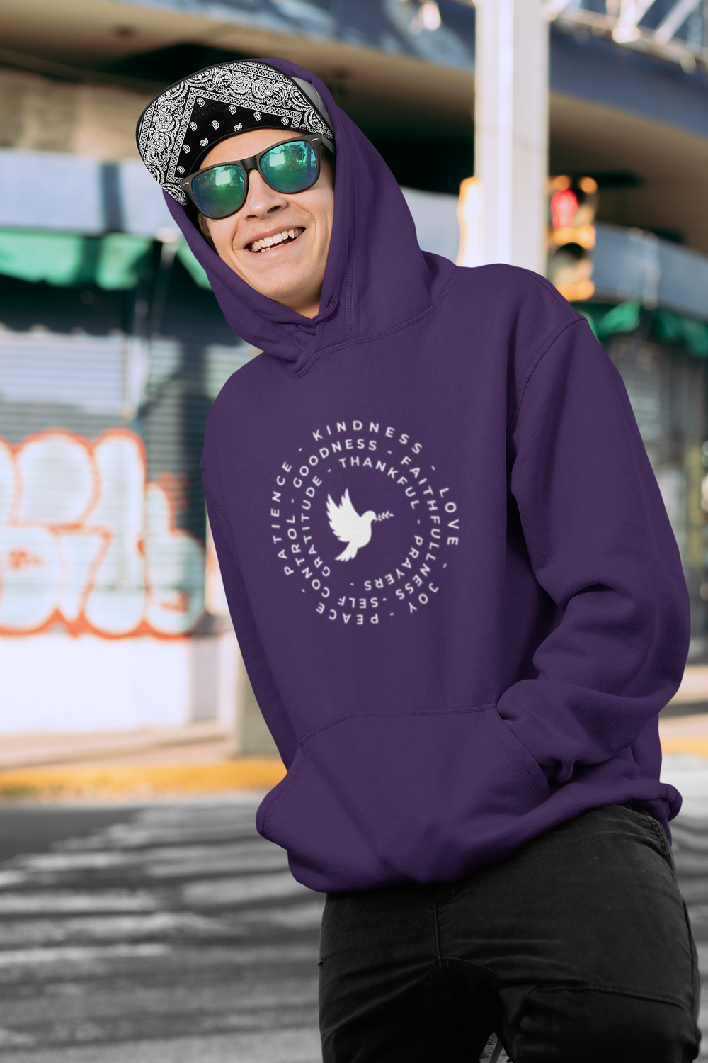 Spread love, hope, and gratitude wherever you go with the Faith & Gratitude Dove Hoodie. Featuring a peaceful dove surrounded by uplifting words like Kindness, Love, Gratitude, Faithfulness, and Peace, this hoodie is more than just clothing — it’s a message of hope and inspiration.