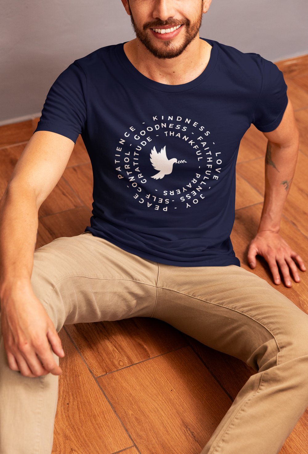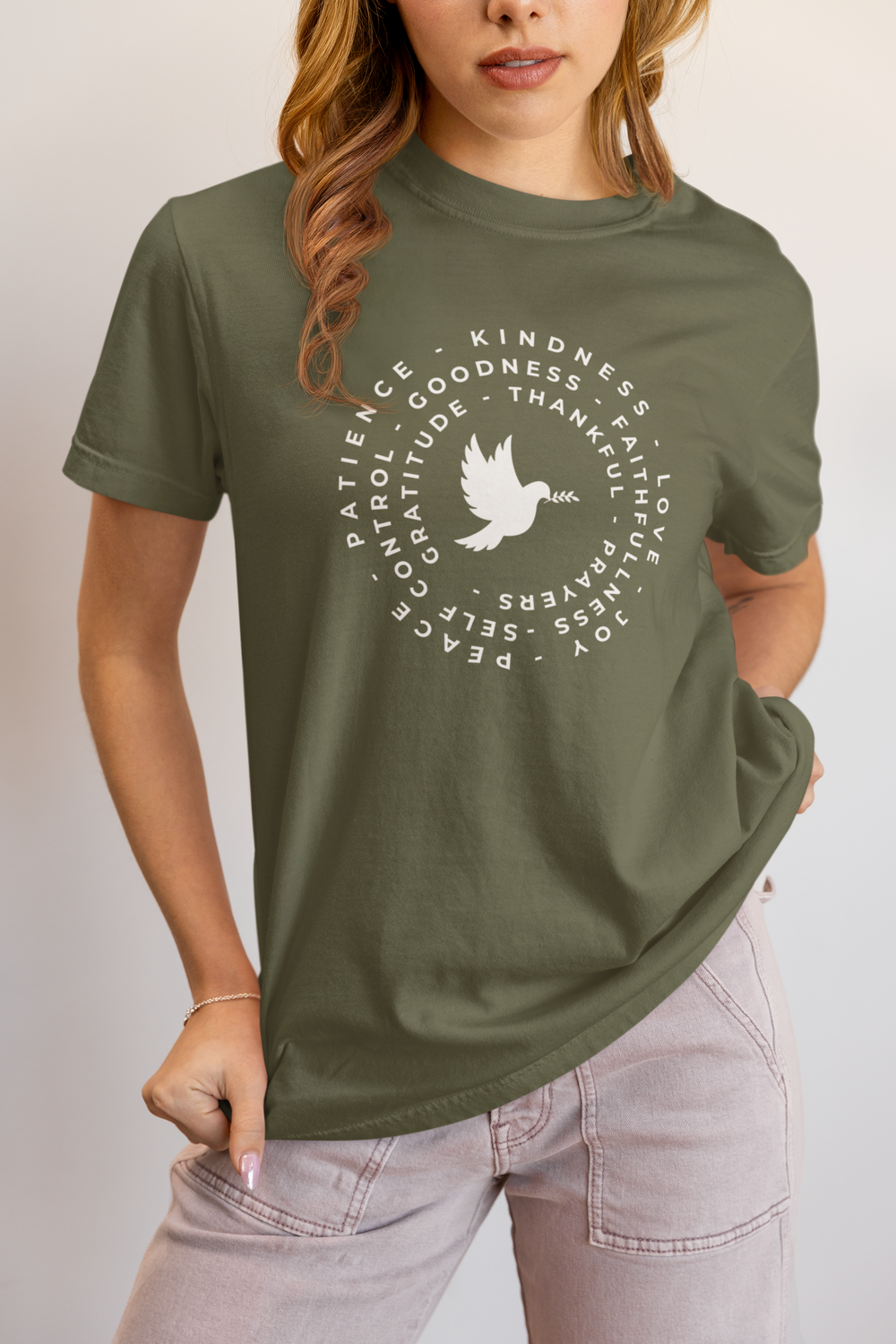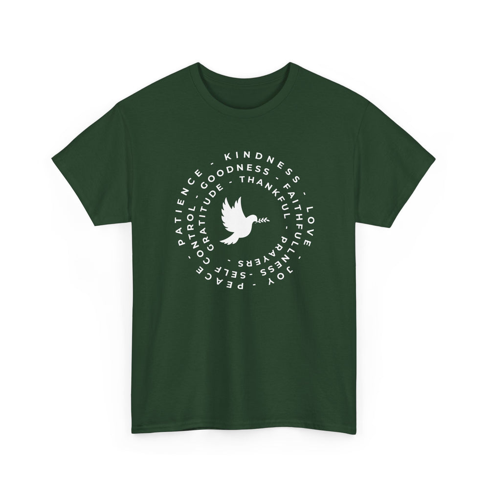 Share your values with style and grace with our Faith & Gratitude Dove T-Shirt. This beautifully designed shirt features a peaceful dove surrounded by uplifting words such as Kindness, Love, Gratitude, and Faithfulness.