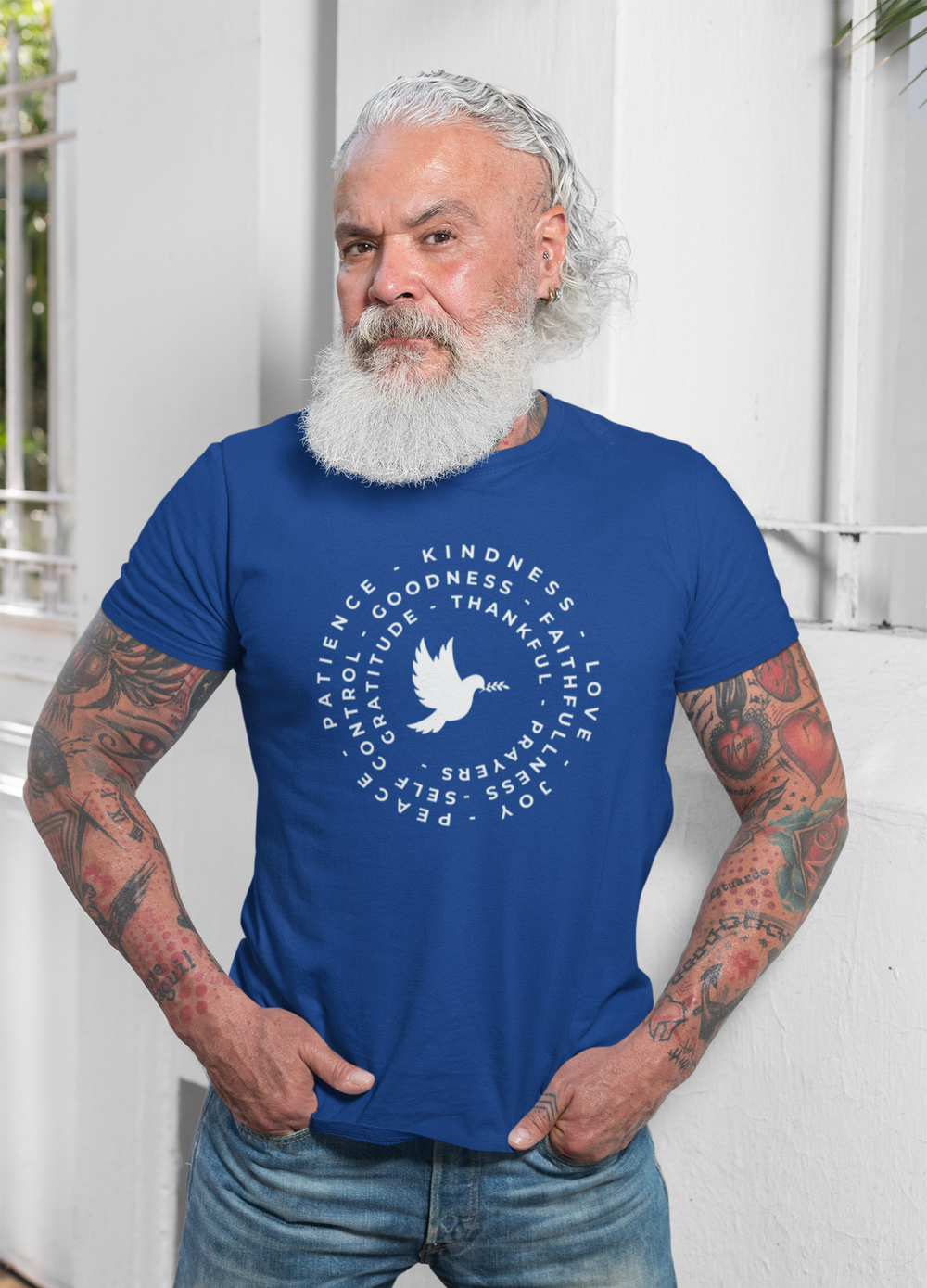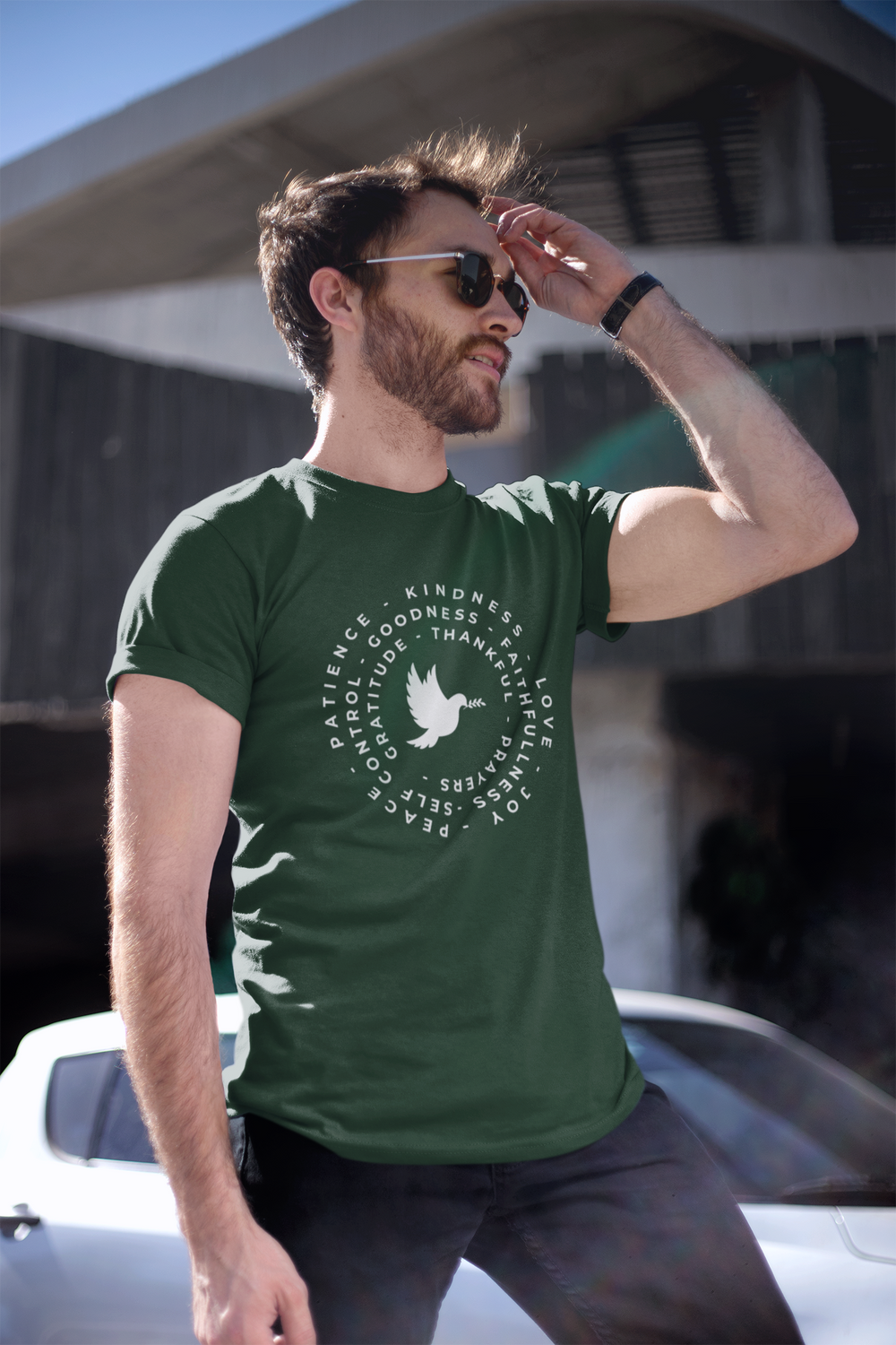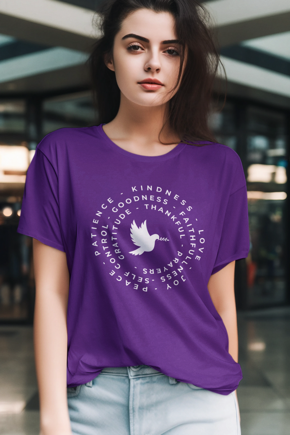 Share your values with style and grace with our Faith & Gratitude Dove T-Shirt. This beautifully designed shirt features a peaceful dove surrounded by uplifting words such as Kindness, Love, Gratitude, and Faithfulness.