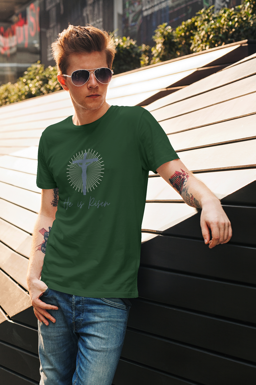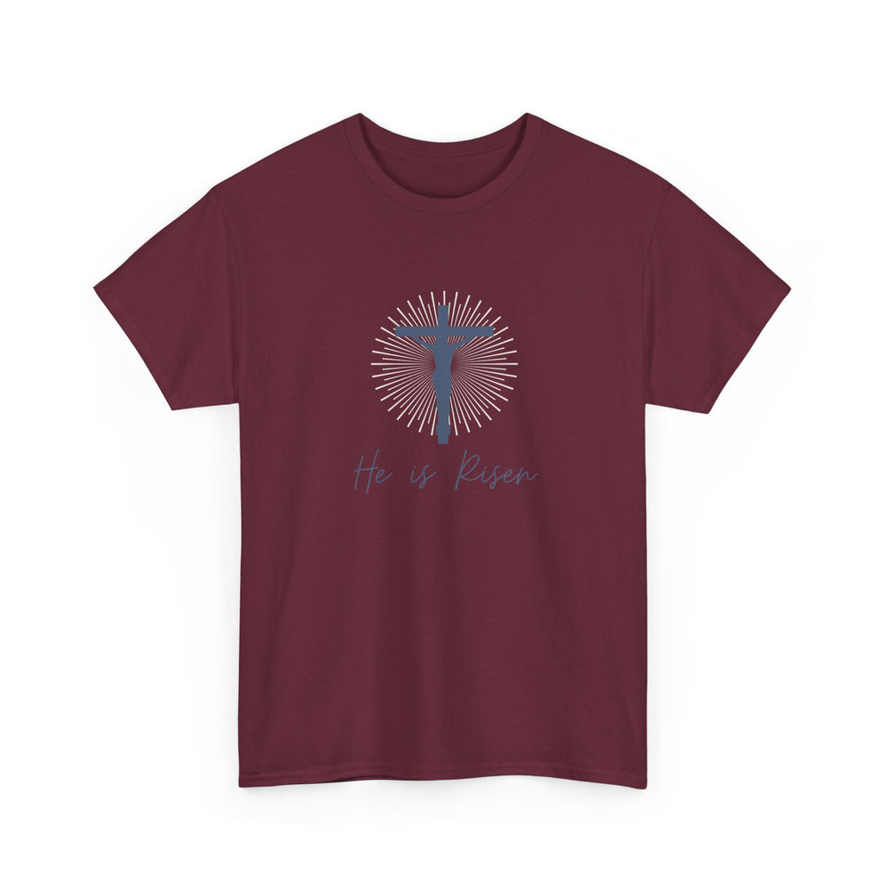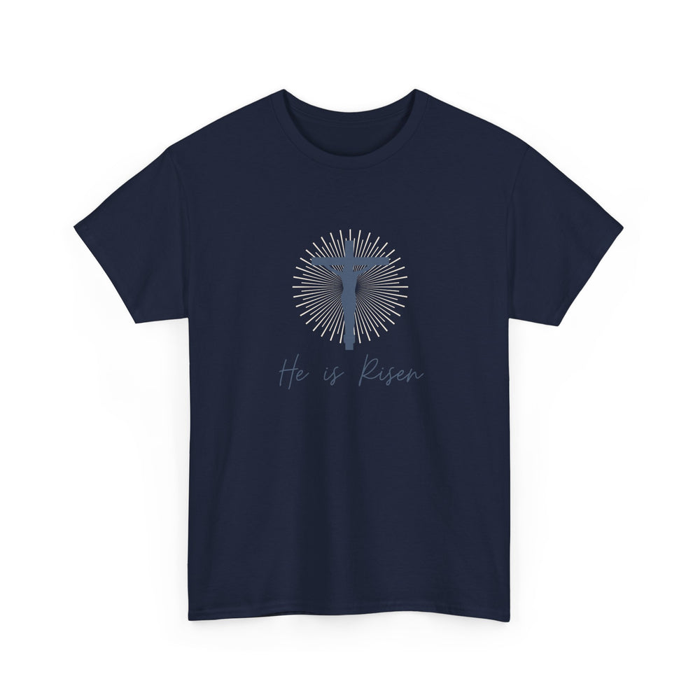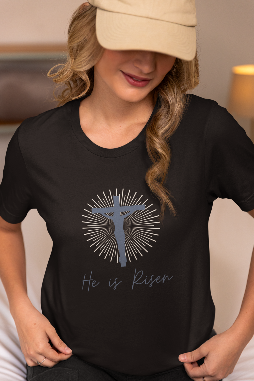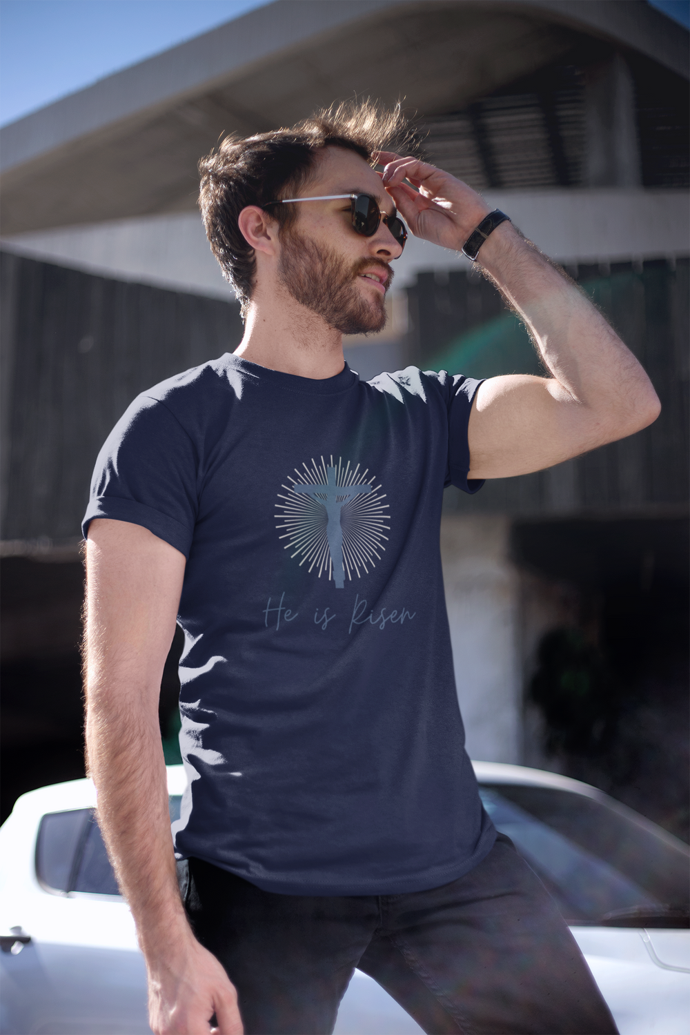 Honor your faith and share the message of hope with the He is Risen T-Shirt. Featuring a powerful design with the cross radiating light, this shirt symbolizes the resurrection of Jesus Christ and the victory of life over death.