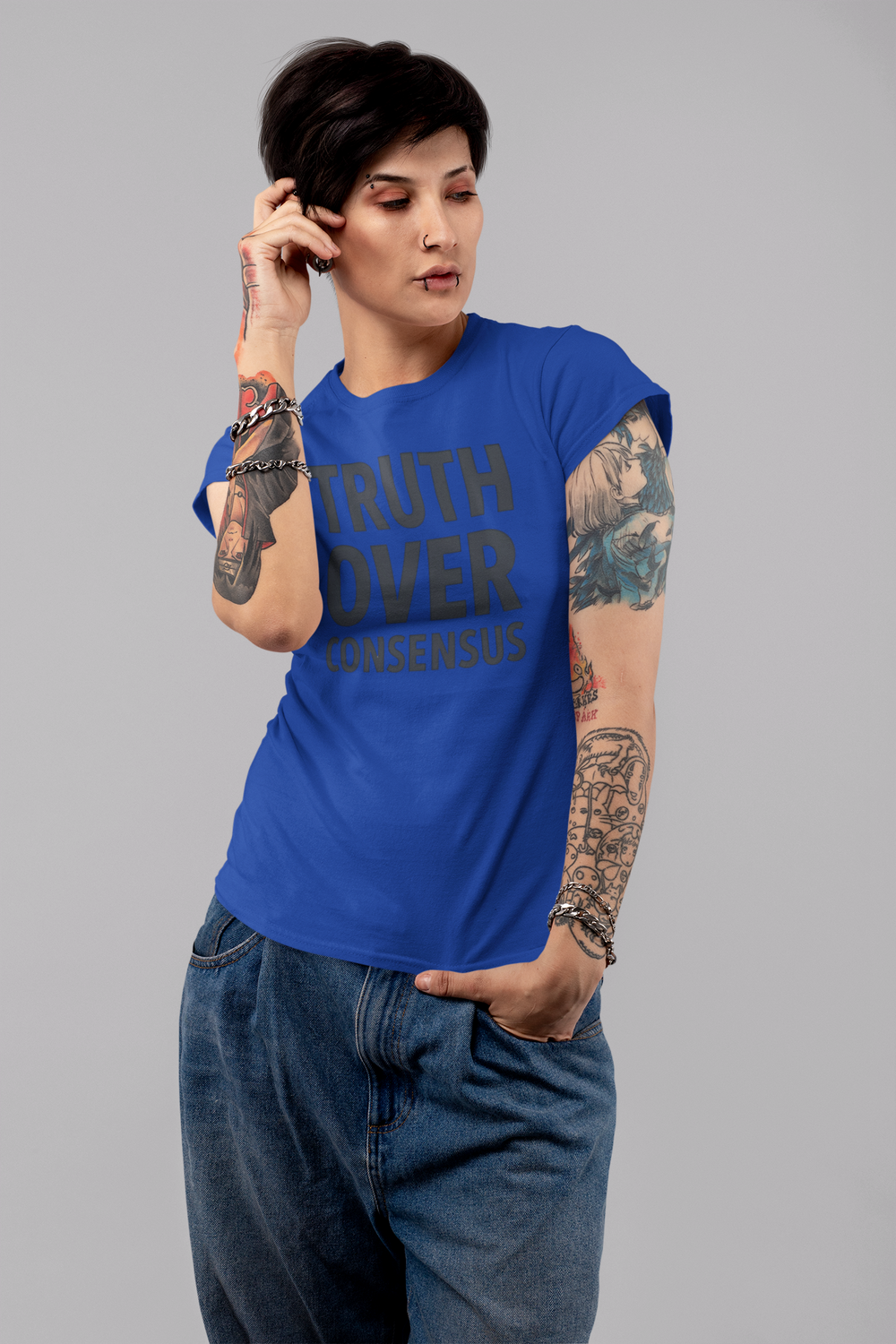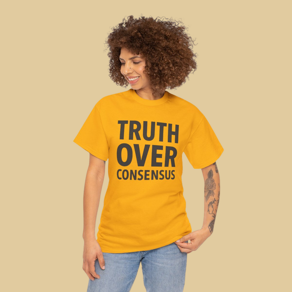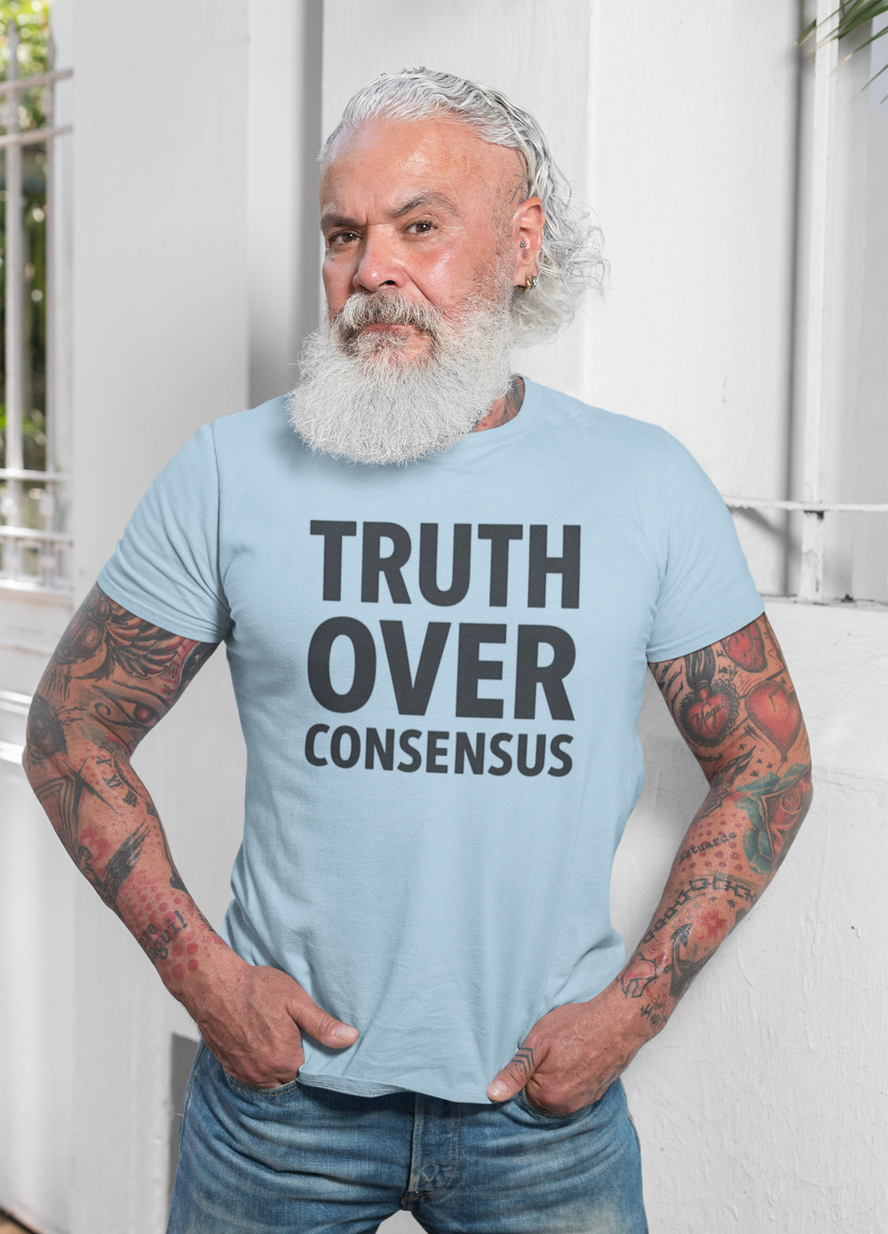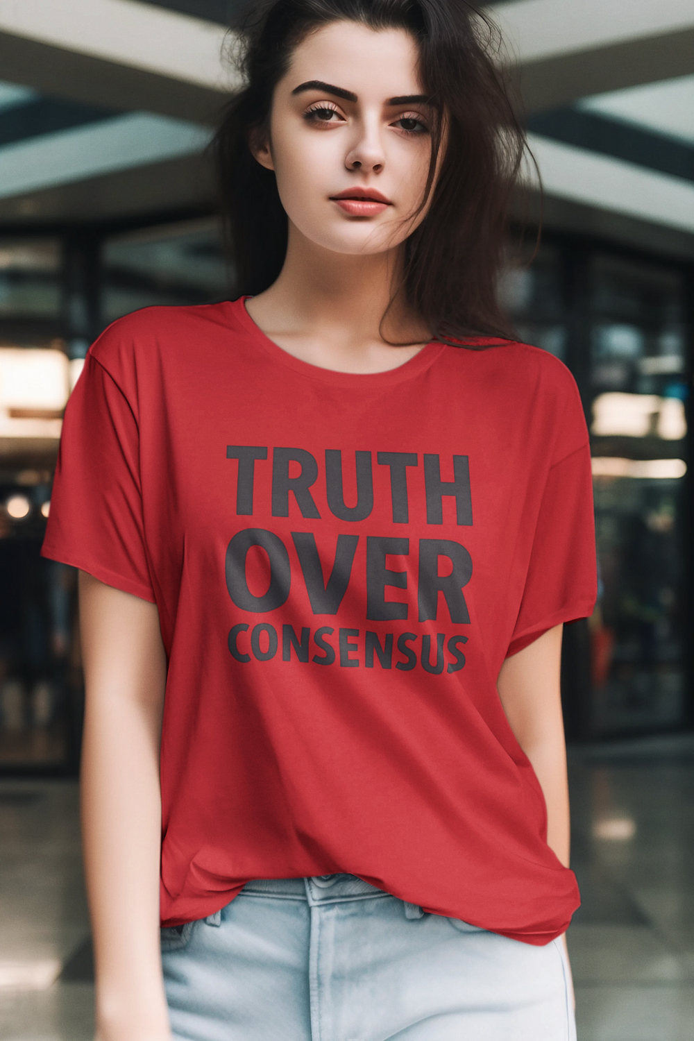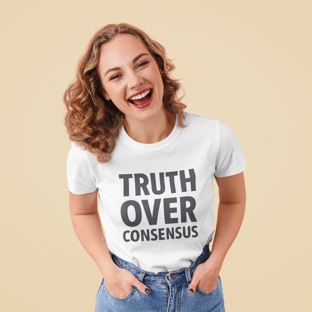 Show the world where you stand with the Truth Over Consensus T-Shirt. This bold design is perfect for free thinkers, truth seekers, and anyone who values facts over popular opinion.