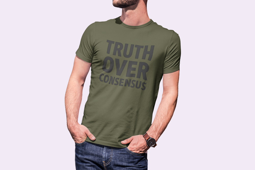 When you wear Truth Over Consensus, you declare that facts matter more than opinions and that truth stands above all else.